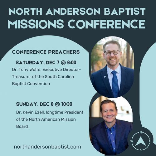 Joining us on Saturday will be Dr. Tony Wolfe, the Executive Director of the South Carolina Baptist Convention and on Sunday, Dr. Kevin Ezell, President of the North American Mission Board. As special as this time will be, it will be even more so due to the fact that we’ll also be celebrating baptism again on Sunday! Praise His name! This is certain to be an impactful conference, and I ask you to join me in prayer for the Lord to move in mighty ways.