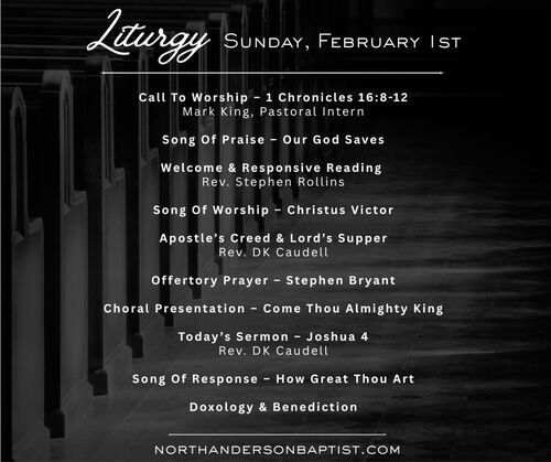 As far as our preaching and teaching schedule goes, Pastor Kyle will simply share the sermon from Joshua 4 that was supposed to be preached on Sunday on this upcoming Lord’s Day.